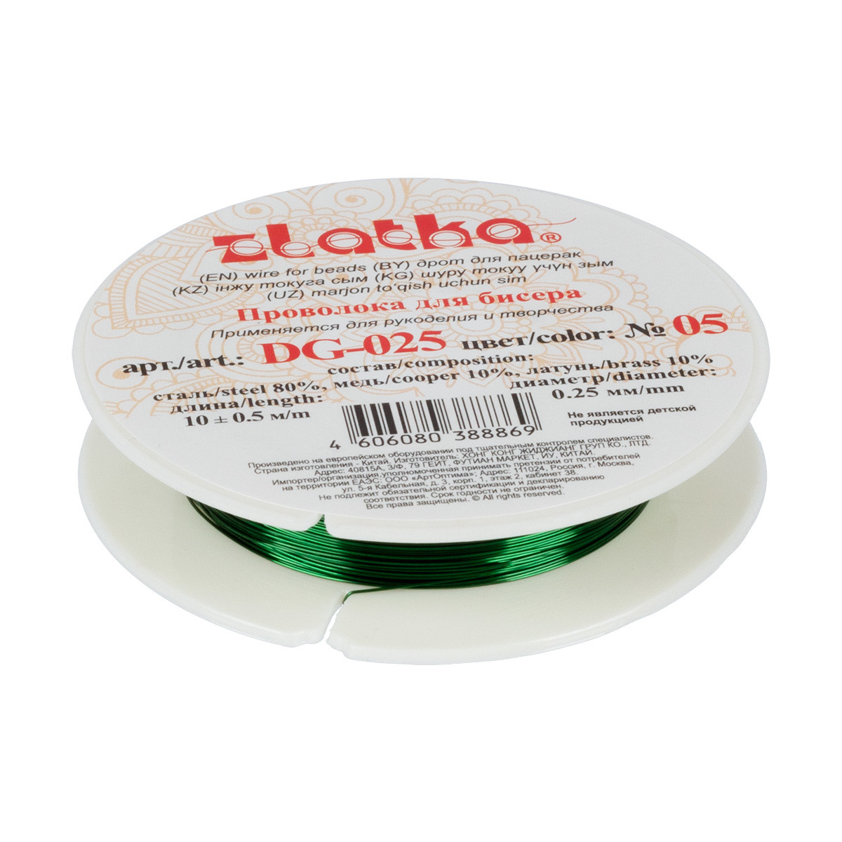 " Zlatka" / " Gamma" Проволока для бисера DG- 025 d 0. 25 мм 10 м №05 зеленый