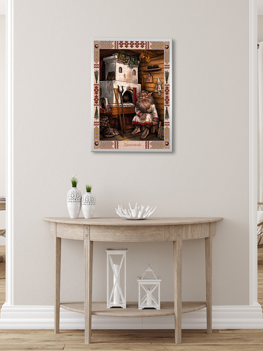 Пазлы ТМ Фрея - это яркие, интересные, увлекательные дизайны. Специально для вас мы разработали уникальную серию картин " Славянская мифология". Готовый пазл с таким сюжетом может стать интересным и необычным украшением интерьера. Также пазлы ТМ Фрея будут отличным подарком для ваших близких. Детали пазлов этой серии толще обычных. Для изготовления деталей мы используем европейский картон премиум качества. Такой картон не деформируется и не расслаивается даже при многократной сборке пазла. Размер готовой работы может отличаться от указанной на сайте. Актуальная информация размещена на упаковке товара. Домового обычно представляли в облике хозяина дома или предка семьи, но с некоторыми зверинымичертами, такими как большие торчком стоящие уши, лохматость и косматость, шерсть по всему телуи длинные когти. Одет домовой в кафтан и рубаху, подпоясанную кушаком. Домовой может жить в красном углу, на печи, у порога, на голбце, на чердаке, в углу клети или в подполе. Место, выбранное домовым, нельзя занимать – это может привести к неприятностям. По одним поверьямдомовой в доме один, по другим – состав его семьи совпадает с составом семьи хозяина дома. Домовой охраняет благополучие в семье, сторожит хозяйство, поддерживает огонь в печи, убирает дом, сушит зерно, ходит за водой, ухаживает за скотом. Но рассерженный домовой проказничает: прячет вещи, шумит ночами в подполе или на чердаке, бьет посуду, стягивает со спящего одеяло, съедает оставленныепродукты, путает оставленную пряжу. При переезде обязательно приглашали домового из старого домав новое место: переносили горящие угли из старой печи в новую или вешали накануне в избе лапоть, а потомтащили всю дорогу в новый дом лапоть на веревочке, веря, что на нем едет домовой. Сообщить о неточности в описании